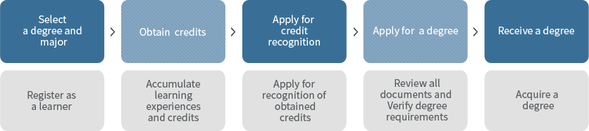 Degree Examination for Self-Education System is an open higher education system in which learners with a high school diploma or equivalent can earn a degree through a 4-step exam.