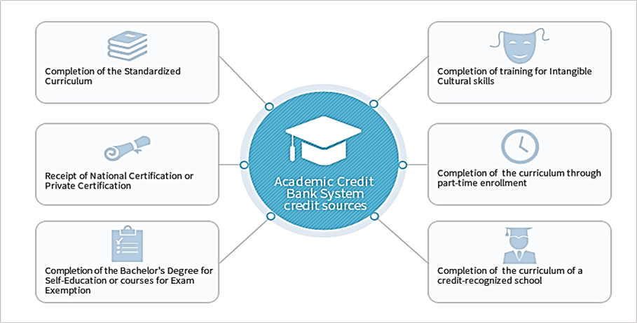 Academic credit bank system is an open higher education system which officially recognizes various learning experiences acquired both inside and outside of traditional school settings. These experiences are granted academic credits which can be used to acquire a degree.