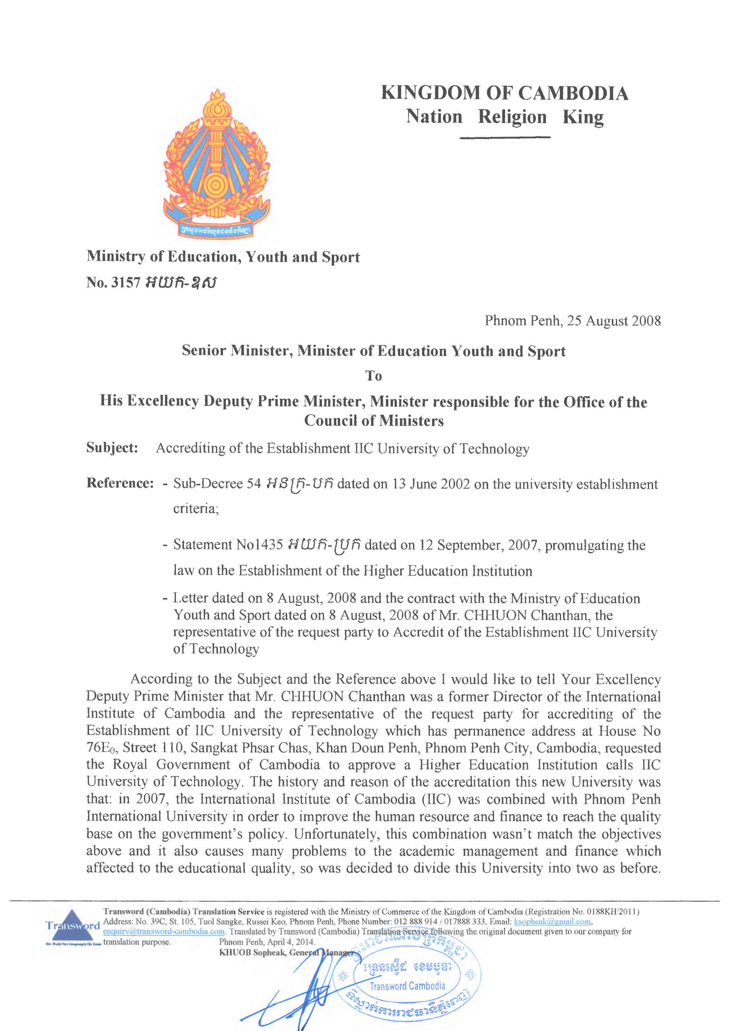 CAMBODIAN PRIME MINISTER'S MESSAGE